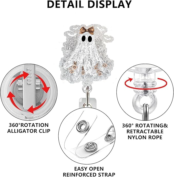 - Cute Halloween Design: The Halloween badge reel features an adorable ghost with spider web design, making it a perfect accessory for the festive season, enhancing your work attire with a touch of Halloween spirit