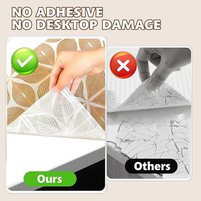 - Non-Adhesive Design for Versatile Use: This multi-functional plastic shelf liner works as shelf/drawer/cabinet liner—ideal as shelf liners for kitchen cabinets non-adhesive, kitchen cabinet protector, renter friendly cabinet covers (practical cabinet cover), no sticky residue. Fits drawer liners for dresser, bathroom/bedroom drawer liner; peel, lay or cut with included tool. Bonus dots add stability for moving areas, a reliable storage solution