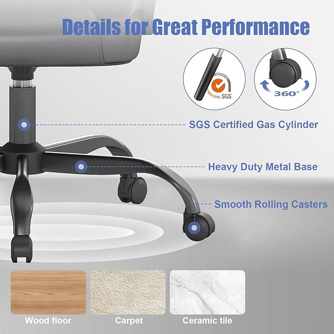 - Ergonomic Seat Design – Features a 3.15" thick cushioned seat and 22.05" high backrest to promote proper posture, suitable as a leather computer chair for long hours