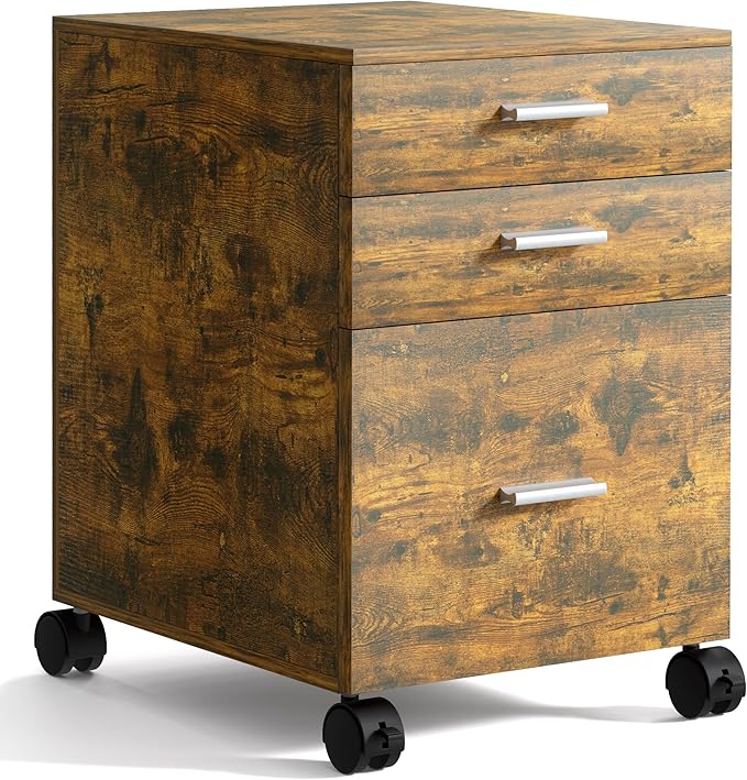 - Mobile & Stable Rustic Brown Storage Solution Equipped with 4 smooth-rolling 360° swivel casters (with Lock function),this mobile cabinet glides effortlessly.The anti-tipping caster design ensures this cabinet with drawers remains secure,making it an ideal and stable under desk storage cabinet.The rich Rustic Brown finish adds a warm, professional touch to any office cubicle or home workspace