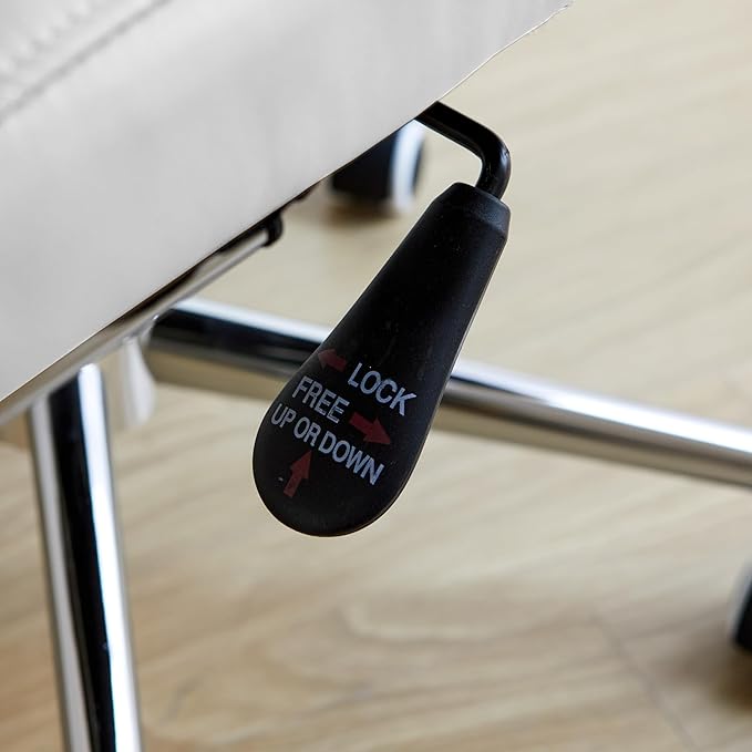 Livinia Modern Executive Office Chair with Patterned Back Design, Chrome & Leather Swivel Chair with High Back, Adjustable Height, Removable Armrests, and Wheels for Home Office (White(Chrome))