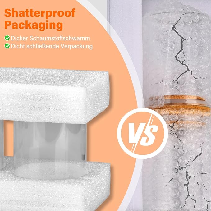 - SAFE STORAGE JARS: Storage jars made of food-safe borosilicate glass, BPA-free, non-toxic, and heat-resistant. Lid seals are made of safe silicone material. The bamboo lids are beautiful and do not rust. The bamboo lid is smooth and burr-free.