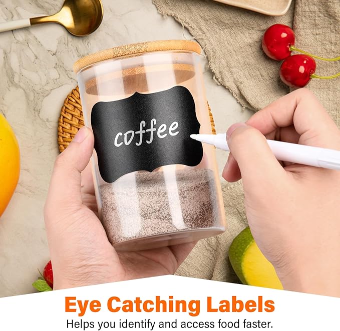 - SPACE-SAVING: Storage jars with lids can be stacked to save space, avoiding clutter and making optimal use of your storage space. Eye-catching labels and transparent bottles can help you identify the food and access it more quickly. Ideal for convenience in your kitchen, storage, and organization.