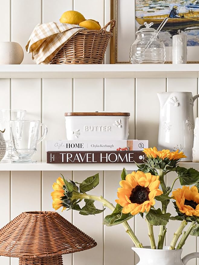 - Exquisite Counter Decorations: Featuring an arctic white glaze adorned with a cute bee embossed pattern, plus a classic acacia wood lid, this farmhouse-style ceramic butter container will infuse warmth and vitality into your counter. Its cute and elegant design suits various home styles