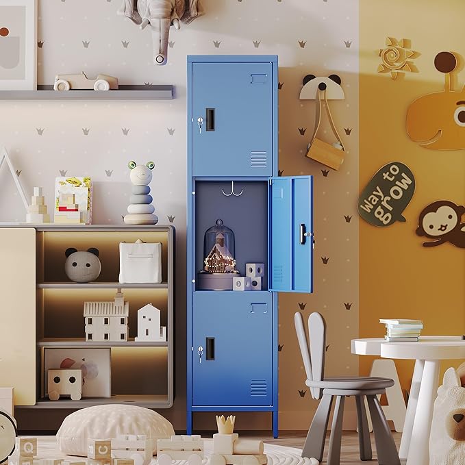 - Versatile Storage Option:Whether you need to organize books, sports equipment, office supplies, or personal belongings, this blue metal locker's three - compartment design provides a flexible and efficient storage solution. Assembly is straightforward with clear instructions included, and maintenance is as simple as wiping down the smooth metal surface.