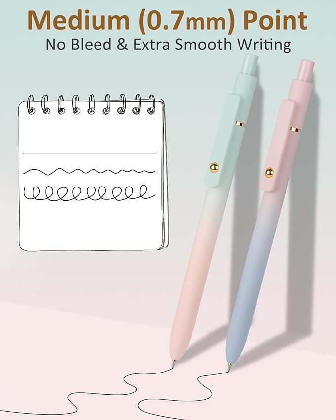 - Medium Point: 0.7mm medium point distributes ink beautifully for crisp writing. Enjoy a smooth writing experience with these 6pcs black gel pens that glide effortlessly across the page