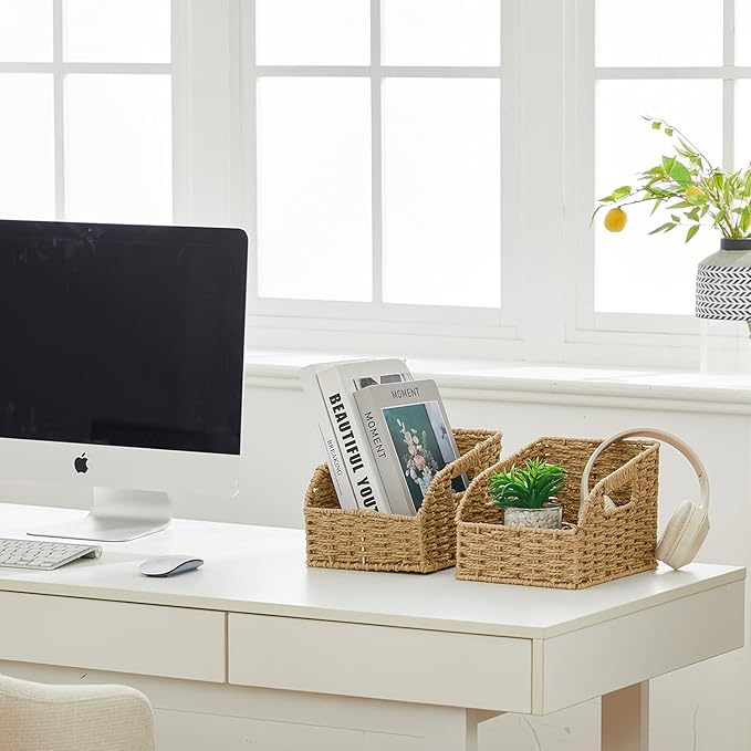 - Handwoven kitchen baskets for storage feature 2 handles for secure and easy carry.Smart options for extra storage in a living area, kitchen or bath.