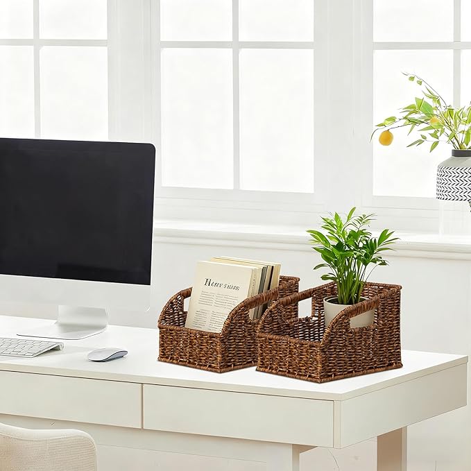 - Handwoven kitchen baskets for storage feature 2 handles for secure and easy carry.Smart options for extra storage in a living area, kitchen or bath.
