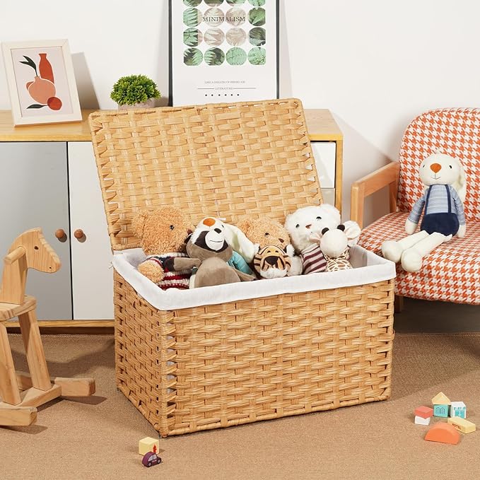 - Hide the Mess in Seconds: This woven storage basket features a lid that serves two key purposes. First, it keeps your belongings private and protected from dust, so your linens stay fresh. Second, it’s your secret weapon for a quick cleanup. When you're short on time or guests are on the way, don't stress about perfect organization. Just toss the clutter inside, flip the lid closed, and enjoy an instantly tidy room. Out of sight, out of mind!