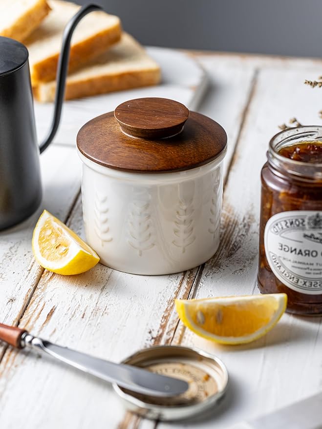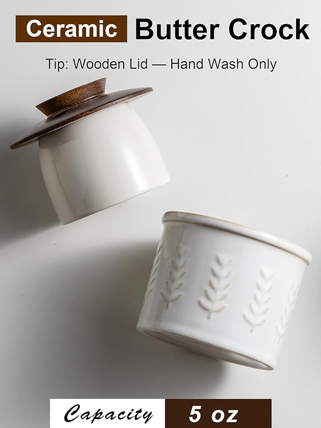- Elegant Kitchen & Gift Choice – With its textured ceramic body and warm wooden lid, this butter keeper enhances any kitchen décor. A thoughtful and functional gift for butter lovers, home cooks, or special occasions