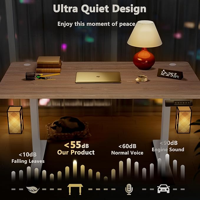 - 【Durable & Quiet Motor】– Designed for peak performance, our electric standing desk boasts a high-quality motor that delivers smooth, quiet height adjustments from 27.9" to 46.8", while the advanced anti-collision system ensures safe operation without interruptions