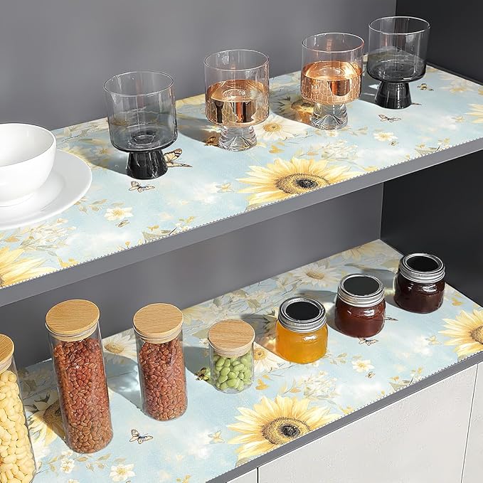 - Quttisay kitchen cabinet liner fits on any flat surface, Enhance the aesthetic appeal of cabinets/drawers,without curling edges. It effectively protects the surfaces of drawers, shelves, cabinets and tables from scratches and daily wear and tear, and prevents debris buildup.