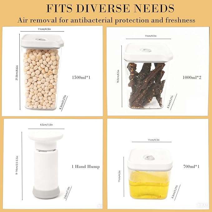 - 【Vacuum-Sealed Freshness Preservation】Comes with a manual pump to remove air in 10 seconds, creating negative pressure that inhibits bacterial growth and locks in freshness for 3x longer than regular containers.