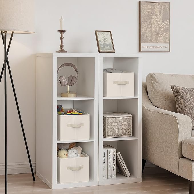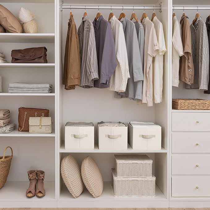 StorageWorks Storage Baskets for Shelves, Foldable Fabric Closet Storage Bins with Handles, Fabric Storage Bins Clothes Organizer, Beige, 3-Pack, Large