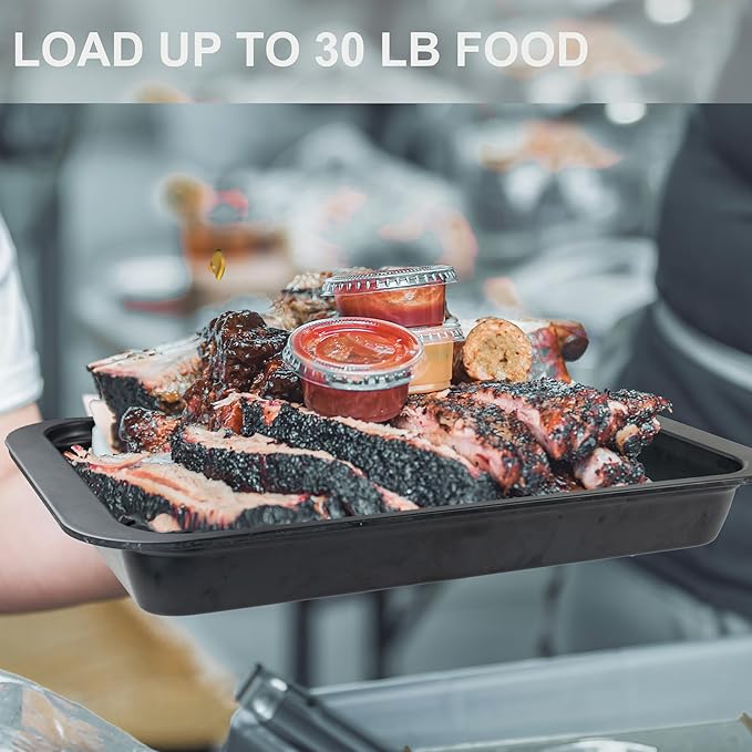 - BPA-FREE & HEAT RESISTANT: The trays are Made of BPA-free, odorless, 100% melamine material, no need looking for cookie sheets or other bakeware while grilling, they are sturdier melamine tray and will not get hot to touch if placed finished grilled meat