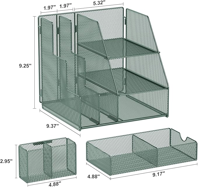 - 【Premium Material】The office supplies desk organizer is made of lightweight, durable metal mesh and reinforced with a solid steel frame that makes it have long-lasting strength and reliable performance