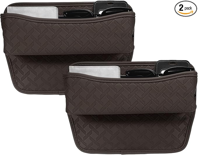 HARFINGTON 2pcs Car Seat Gap Filler Organizer 11.5 x 8 x 2.1 Inch Leather Universal Car Organizer Storage Box Between Seat and Console for Phone Sunglasses Keys, Coffee
