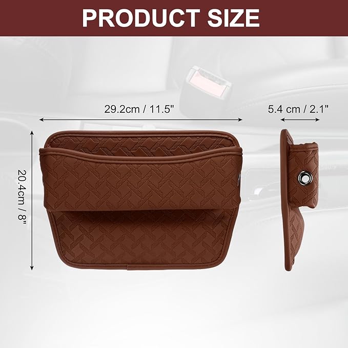 HARFINGTON Car Seat Gap Filler Organizer 11.5 x 8 x 2.1 Inch Leather Universal Car Organizer Storage Box Between Seat and Console for Phone Sunglasses Keys, Brown