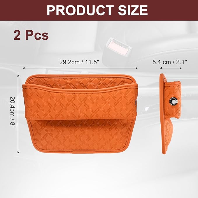 HARFINGTON 2pcs Car Seat Gap Filler Organizer 11.5 x 8 x 2.1 Inch Leather Universal Car Organizer Storage Box Between Seat and Console for Phone Sunglasses Keys, Orange