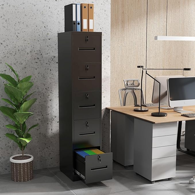 5 Drawer File Cabinet with 5 Locks, Metal Filing Cabinet Heavy Duty Vertical File Cabinets for Home Office, Steel File Storage Cabinets for Letter/Legal File Folders, Assembly Required (Black)