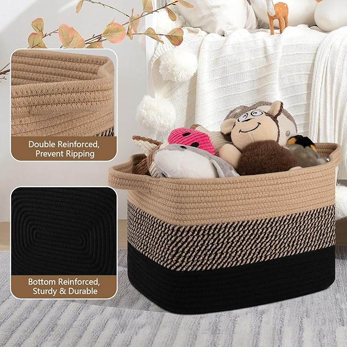 Storage Basket for Organizing, Woven Baskets for Storage, Rectangle Decorative Baskets for Shleves, Closet, Toys, Books, Nursery Organizer Bins - Pack of 3 (Black & Brown, 15.75"x11.8"x9.85")