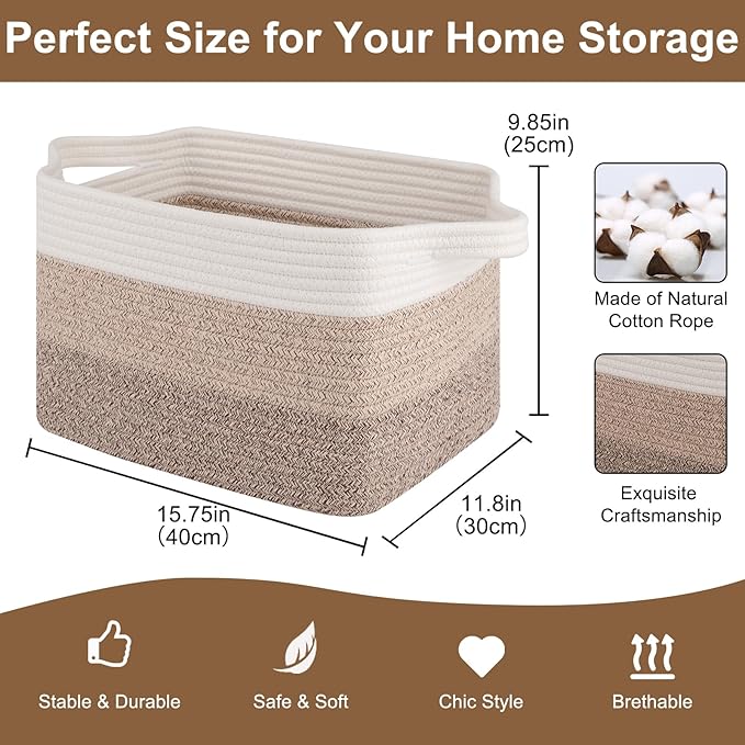 - Multifunctional Storage Basket: 15.75" x 11.8" x 9.85" shelf basket for organizing, which are designed to fit perfectly on living room, bedroom, bathroom, baby room, office to store household items (towels, toiletries, stuffed animals, books, baby diapers, etc.)