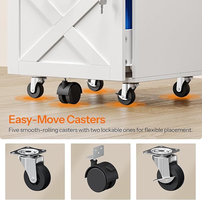 - Smooth Mobility: This mobile file cabinet is equipped with 5 smooth-rolling casters, including locking wheels. Move this storage cabinet with ease around your home office to wherever you need it most, providing flexible organization