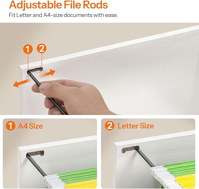 - Versatile and Secure Filing: This farmhouse file cabinet's large file drawer features an adjustable file rod that offers flexible hanging for A4 and Letter-size files. The included lock helps keep your private files and valuable items secure
