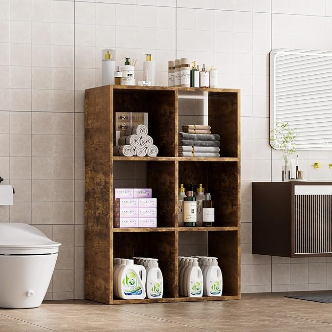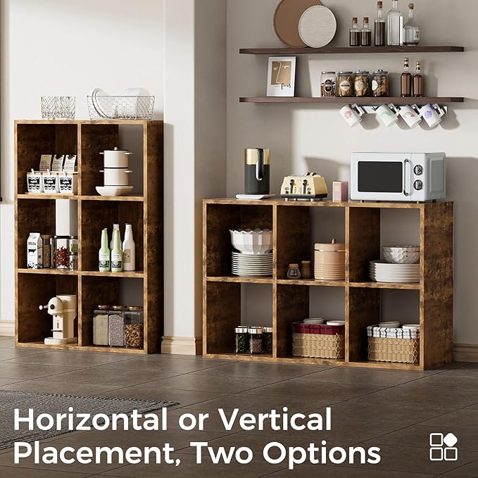 COMHOMA 6 Wood Cube Storage Organizer with Open Back and Removable Back Panels, 11In Brown Cube Storage Bookshelf, Cubicle Shelf Bookcase for Home Office Bedroom Living Room, Vertical or Horizontal