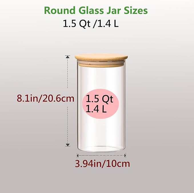- [Product Capacity] 3 Round jars with , dimensions are 3.94x8.1 inches(10cmx20.6cm),It can store cookies, candy, flour, rice, beans, spice, cereals etc.Note: This glass jar is not suitable for Spaghetti
