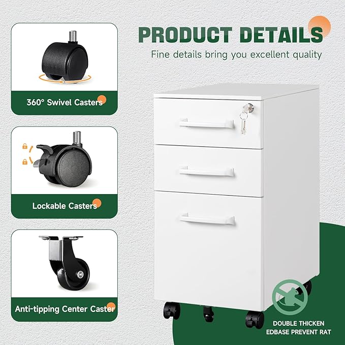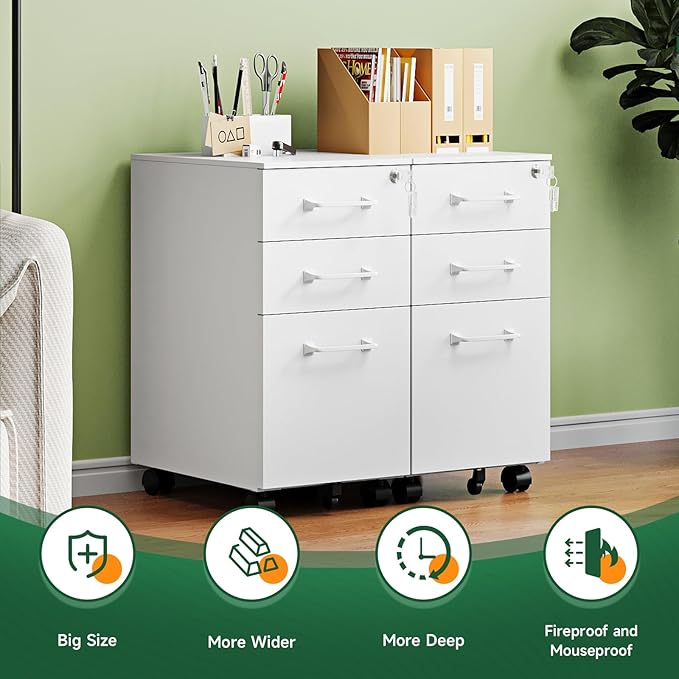 - Privacy Security:1 lock secures all three drawers, comes with 2 keys for your locking ,Anti-tilt mechanism allows only one drawer to open at the same time to prevent the cabinet from tipping forward