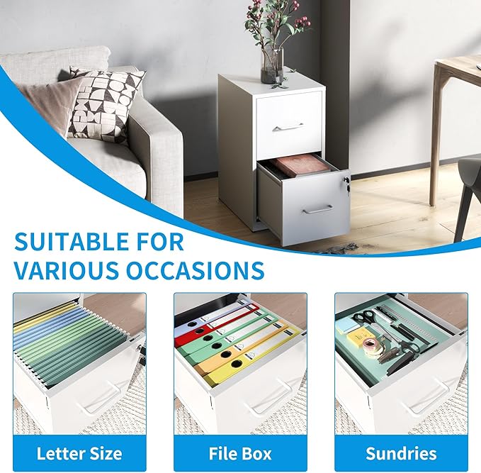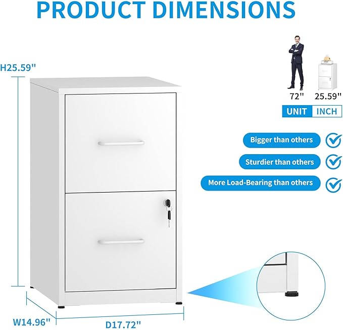 - 【Safety & Security】 One lock with 2 keys secures all 2 drawers, this steel locking file cabinet ensures the safety of your confidential documents, offering peace of mind for both home and office use.