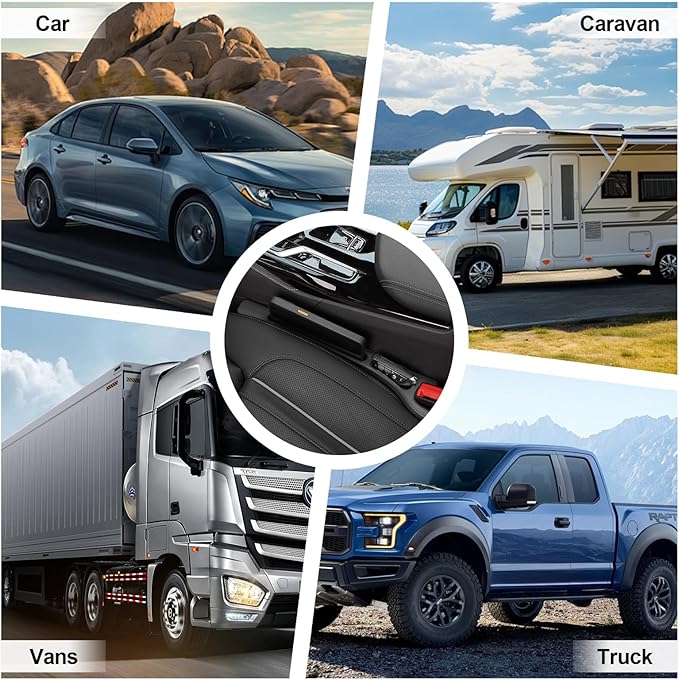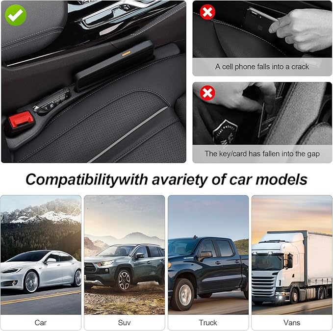 - 🚗Universal Fit for Most Vehicles – Designed to fill gaps between your car seat and center console. Measures 1.18"–2.36" wide, perfect for most cars, SUVs, trucks, vans, and RVs.