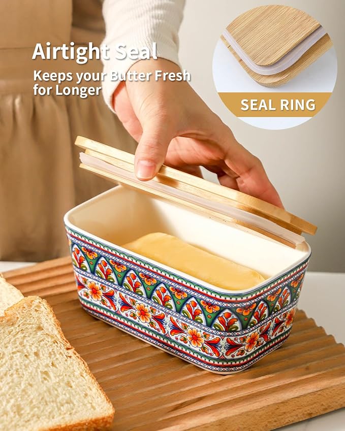 - Warm Tips: The porcelain butter container is microwave, dishwasher and freezer safe, except the lid. Farmhouse butter dish with functionality and attractive appearance is the ideal for Christmas gift