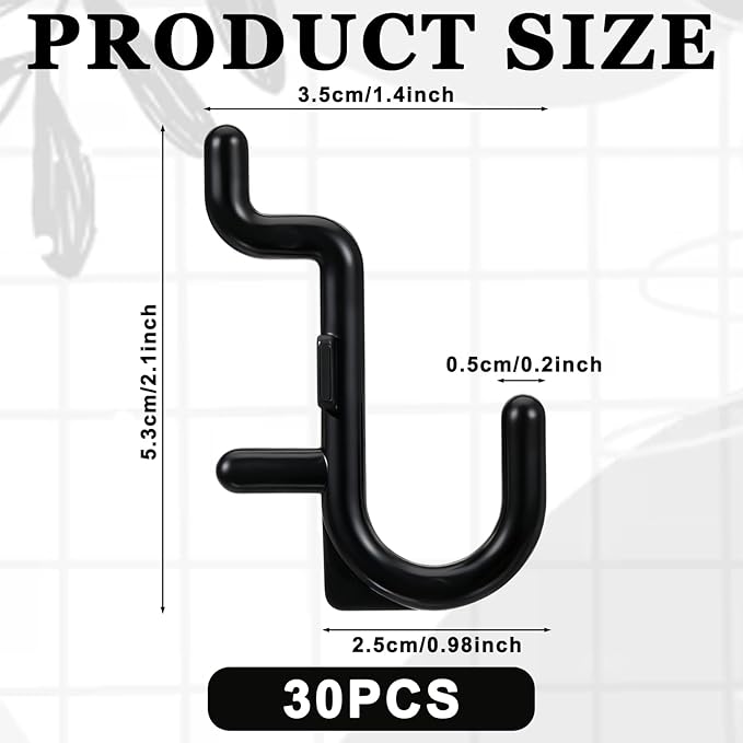 - 【Sufficient Quantity】You will receive 30pcs black pegboard hooks, sufficient quantity to meet your organizational needs. Whether you're setting up a new workspace or enhancing an existing one, these j hooks provide a comprehensive solution