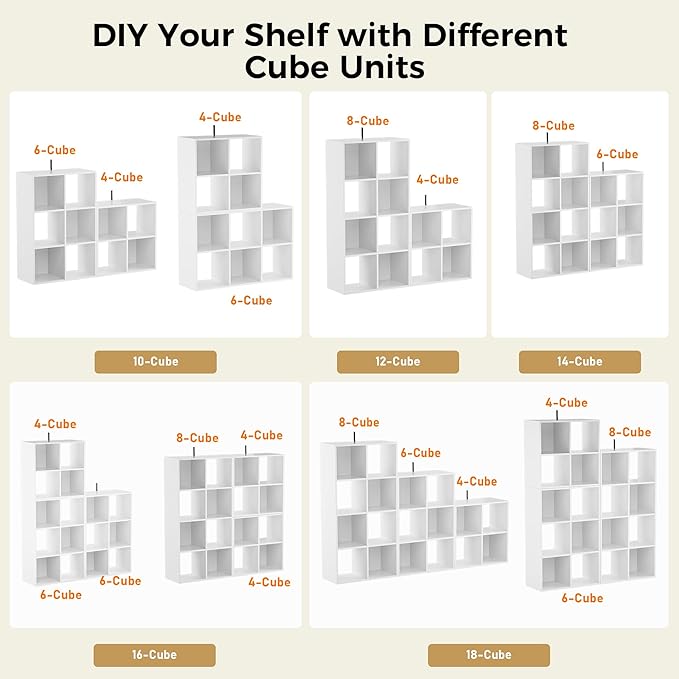- Modular. Flexible. Stylish: Use it horizontally or vertically, on its own or combined (4+4, 6+6, 8+8, 6+8, 4+6+6, 6+8+8, etc.) to suit any space. The half-open, half-backed design blends storage and display—perfect for books, décor, clothes, and more