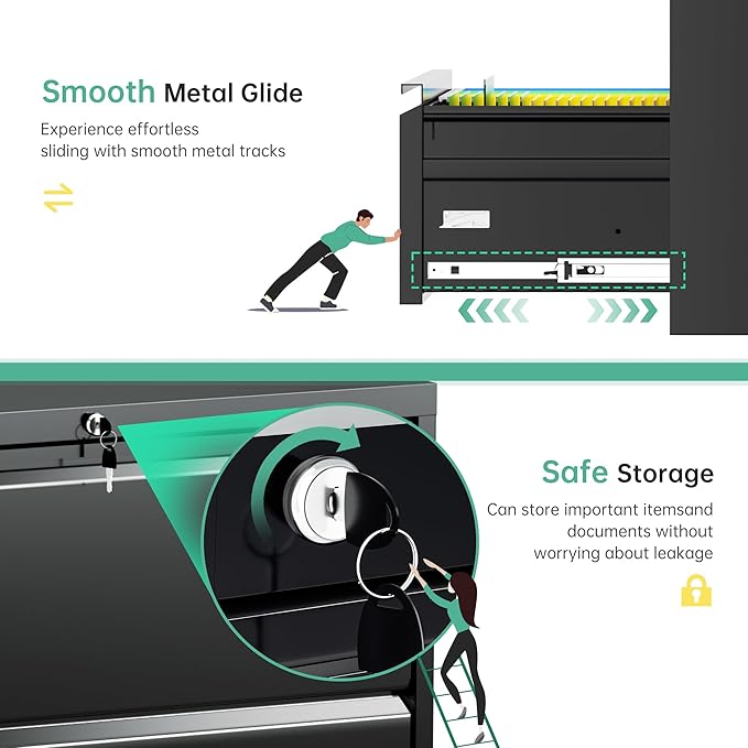 - 【Additional design】Black office lockable steel file cabinets with locks have excellent quality ball bearings that open and close smoothly and with little sound. The file cabinets are of excellent quality to ensure a quiet environment and extended use. Metal horizontal file cabinets have anti-slip mats to protect the floor. Bringing you comfortable using feeling.