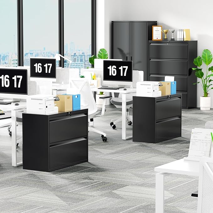 - 【Heavy file cabinet】Black metal filing cabinet with lock is sturdy and durable with an all-metal design.Top of the office lateral filing cabinet can bear a maximum weight of 330lbs, and each drawer can bear a weight of 110 lbs. excellent-quality wide file cabinets can put more things on top and take you to a more convenient office space.