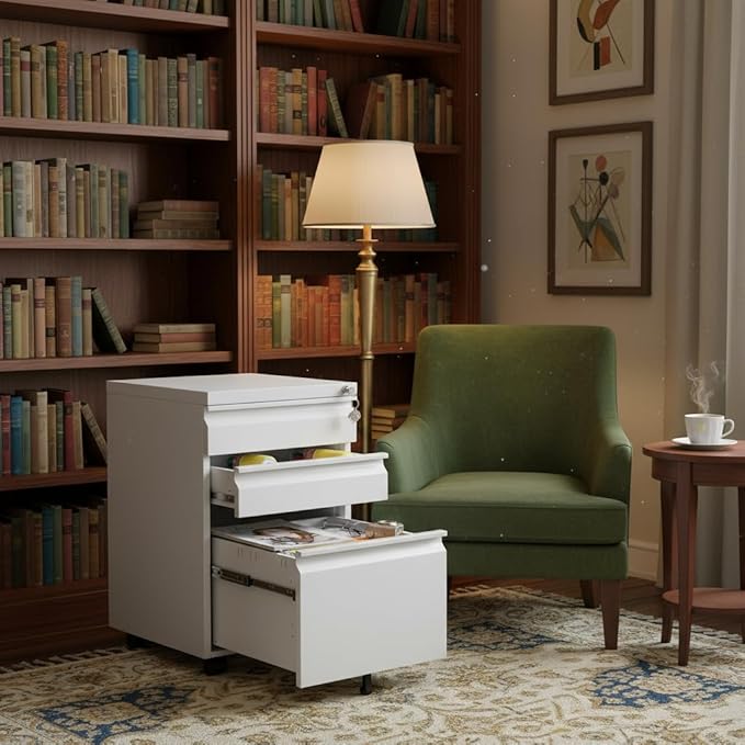 - Durable Metal Construction in Modern White:Constructed from high-quality metal with a clean white modern finish, this filing cabinet offers long-lasting durability, smooth-gliding drawers, and a contemporary look that complements any home or office décor.