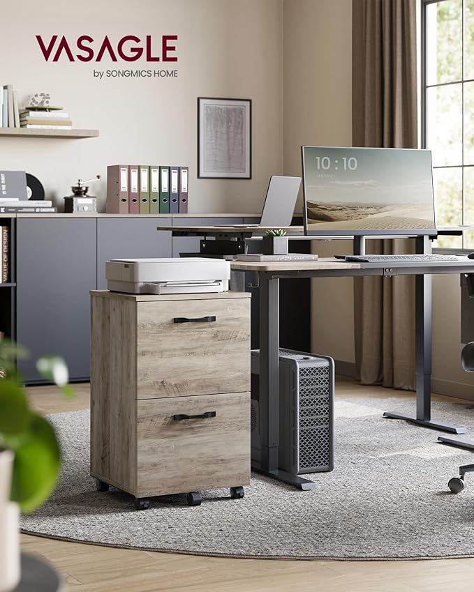 VASAGLE 2-Drawer File Cabinet, Small Rolling Filing Cabinet for Home Office, Printer Stand, for A4, Letter-Size Documents, 15.7 x 16.5 x 27.6 Inches, Heather Greige UOFC040LK02S