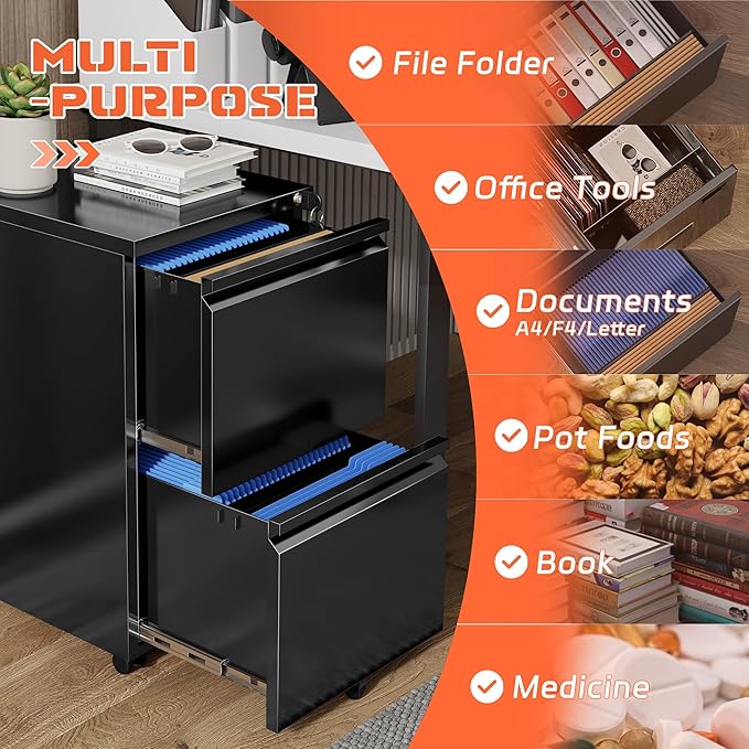 - 【Secure Document Storage】: Keep your confidential files and valuables safe with the built-in lock and key system. This 2-drawer file cabinet on wheels is the perfect under desk file cabinet or mobile storage cart for any home or office, helping you maintain a clean and clutter-free workspace