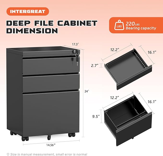 - 【Secure Document Storage】: Keep your confidential files and valuables safe with the built-in lock and key system. This 3 drawer file cabinet on wheels is the perfect under desk file cabinet or mobile storage cart for any home or office, helping you maintain a clean and clutter-free workspace