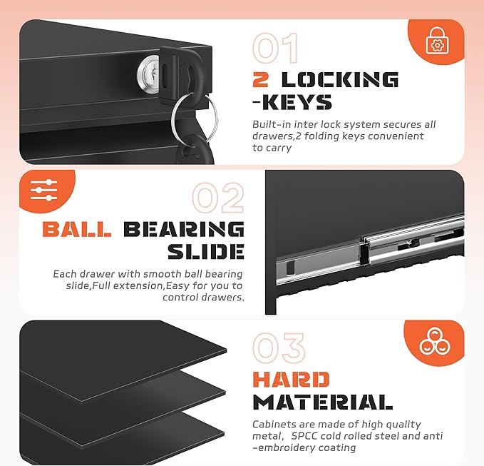 - 【Durable Metal Construction】: Built from heavy-duty steel with anti-rust electrostatic coating, this metal filing cabinet offers long-lasting strength and can hold up to 300 lbs. total. The sealed drawer design helps prevent dust and pests, making it a reliable home office storage solution