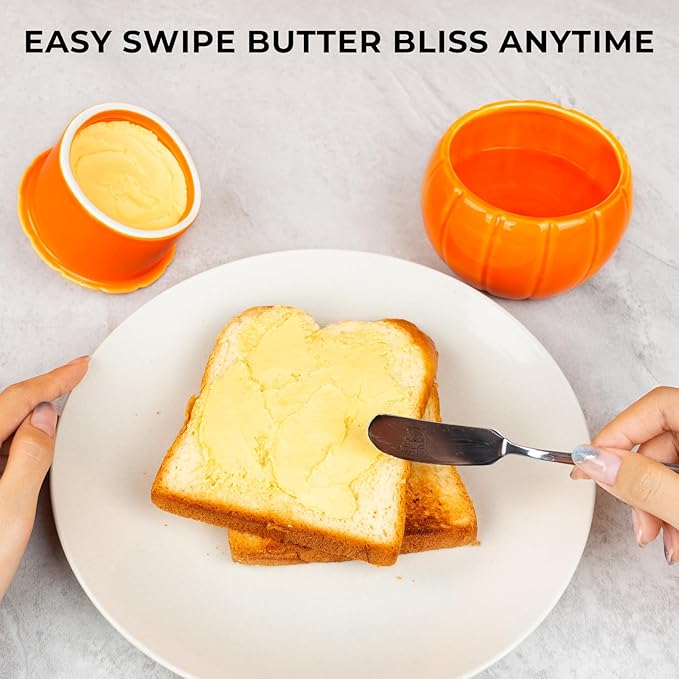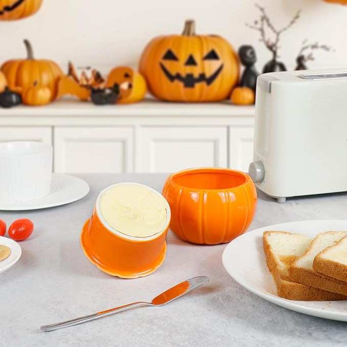 SETRON Halloween Pumpkin Butter Crock, Ceramic Butter Keeper with Lid, Airtight French Butter Crock for Countertop Storage, Butter Dish for Spreadable Butter, Perfect Gift for Kitchen