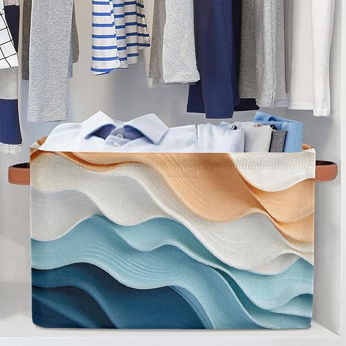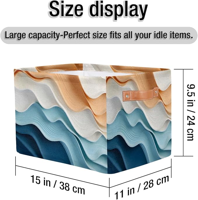 Ripple Storage Basket with Handle, Decorative Storage Bins Closet Bookshelf Dog Toy Organizer 15"x11"x9.5"