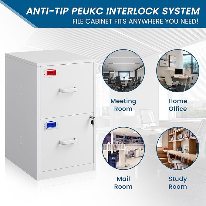 - 【Secure Locking System】Keep your confidential documents safe. The central lock securely engages both drawers simultaneously, and the set includes two keys for your convenience. A built-in label holder helps you stay organized.
