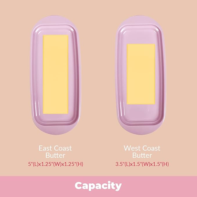 - Perfect Fit: Designed to fit both East and West Coast butter sticks (base: 7.36" x 3.15" x 0.55", lid: 5.83" x 2.44" x 1.5"), keeping butter secure, neat, and mess-free on your countertop or in the fridge