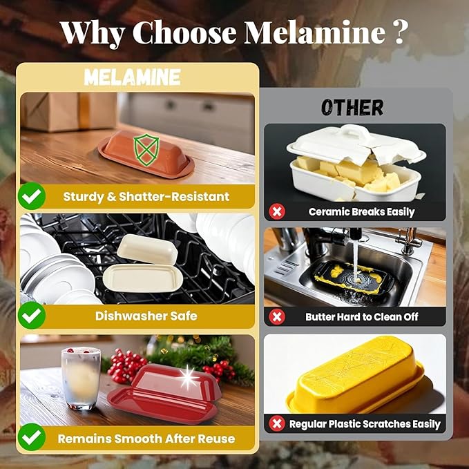 - Lightweight & Durable: Crafted from premium BPA-free melamine, this Lynnsen basic butter dish is lightweight yet sturdy, resisting chips and cracks better than ceramic or glass. Its smooth, glossy finish stays vibrant with daily use, offering a long-lasting, family-safe kitchen solution