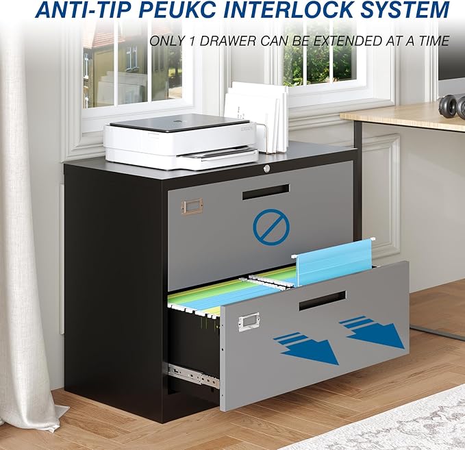 - Security & Anti-tilting- The lock on the top of the metal file cabinet can lock two drawers at the same time, which can effectively protect the privacy of documents. Also the anti-tilting mechanism can prevents tipping when two drawers are opened at the same time for Guaranteeing for your safety. Come with 2 keys.