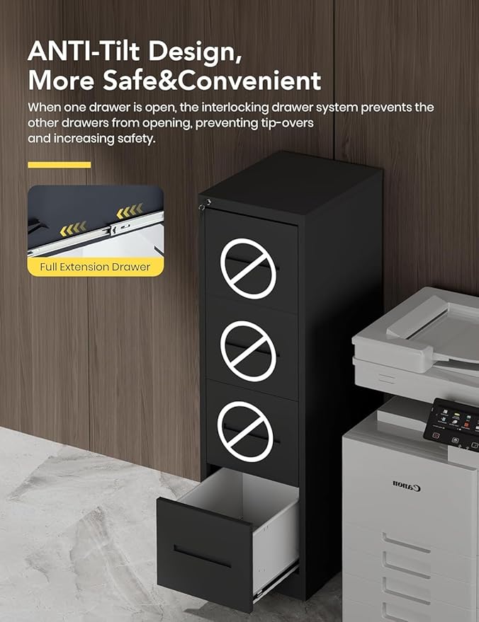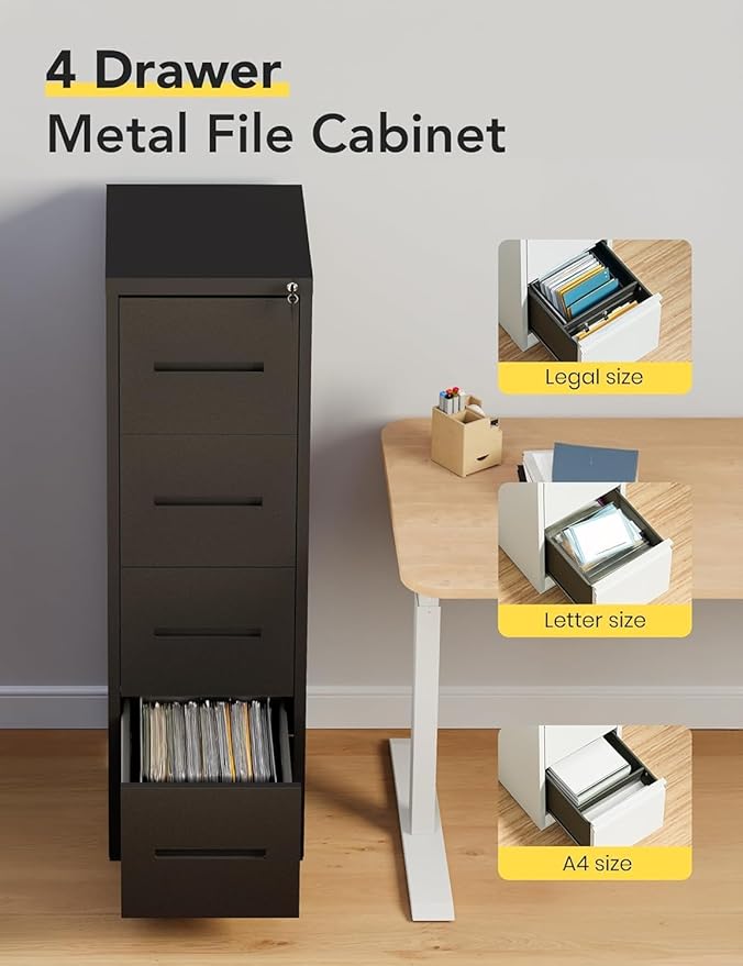 - STORAGE CAPACITY: Features 4 full-extension drawers with 9.84" depth, perfect for organizing Legal, Letter, and A4 files with adjustable hanging rails